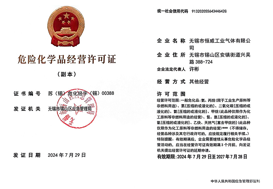 無錫市恒威工業氣體有限公司位于錫山經濟開發區,交通便利,環境優美。 公司主要生產經營各種工業氣體、高純氣體、特種氣體,包括:氧氣、氬氣、氮氣、氨氣、氫氣、二氧化碳、乙炔、丙烷、甲烷、氪氣、六氟化硫、標準氣體等,適用于鋼鐵、金屬、化工、食品、制藥、汽車、船舶、電子、冶金、化工、造船、電子、光纖通訊、機械制造、食品、太陽能光伏 、LED、半導體等領域。 公司堅持走節能減排的低碳路線,推進綠色生產,減少資源消耗,轉變發展方式。竭誠與新老客服合作,共創佳業! |